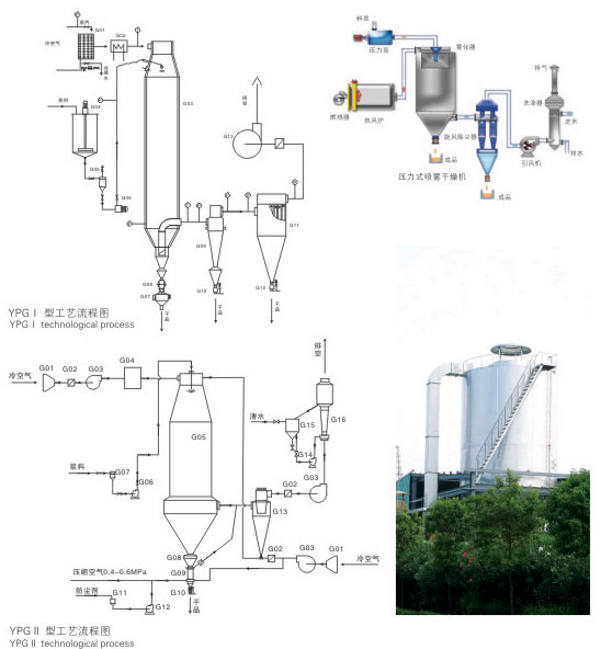 压力式喷雾干燥造粒机是采用压力式雾化器借助隔膜泵的压力将溶液或浆状的物料雾化成